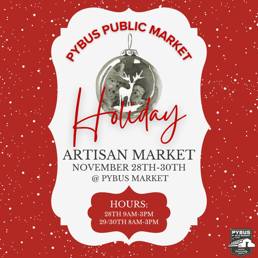 Pybus Public Market will be filled with holiday cheer, local vendors, and plenty of handmade treasures. It’s the perfect way to kick off the season, find thoughtful gifts, and experience the warmth and creativity of our artisan community.