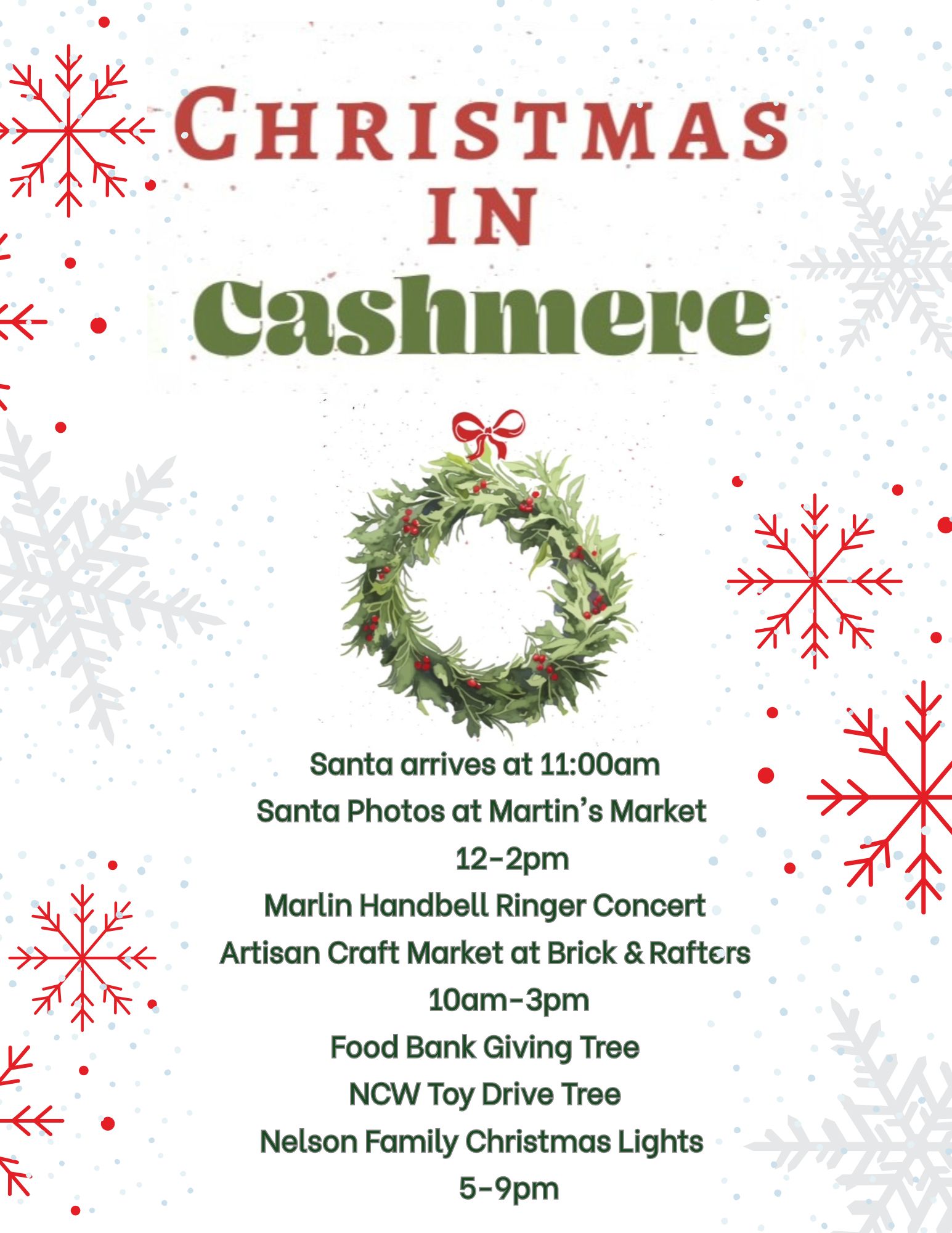 Christmas in Cashmere community event happens on Cottage Avenue from 10am-3pm.